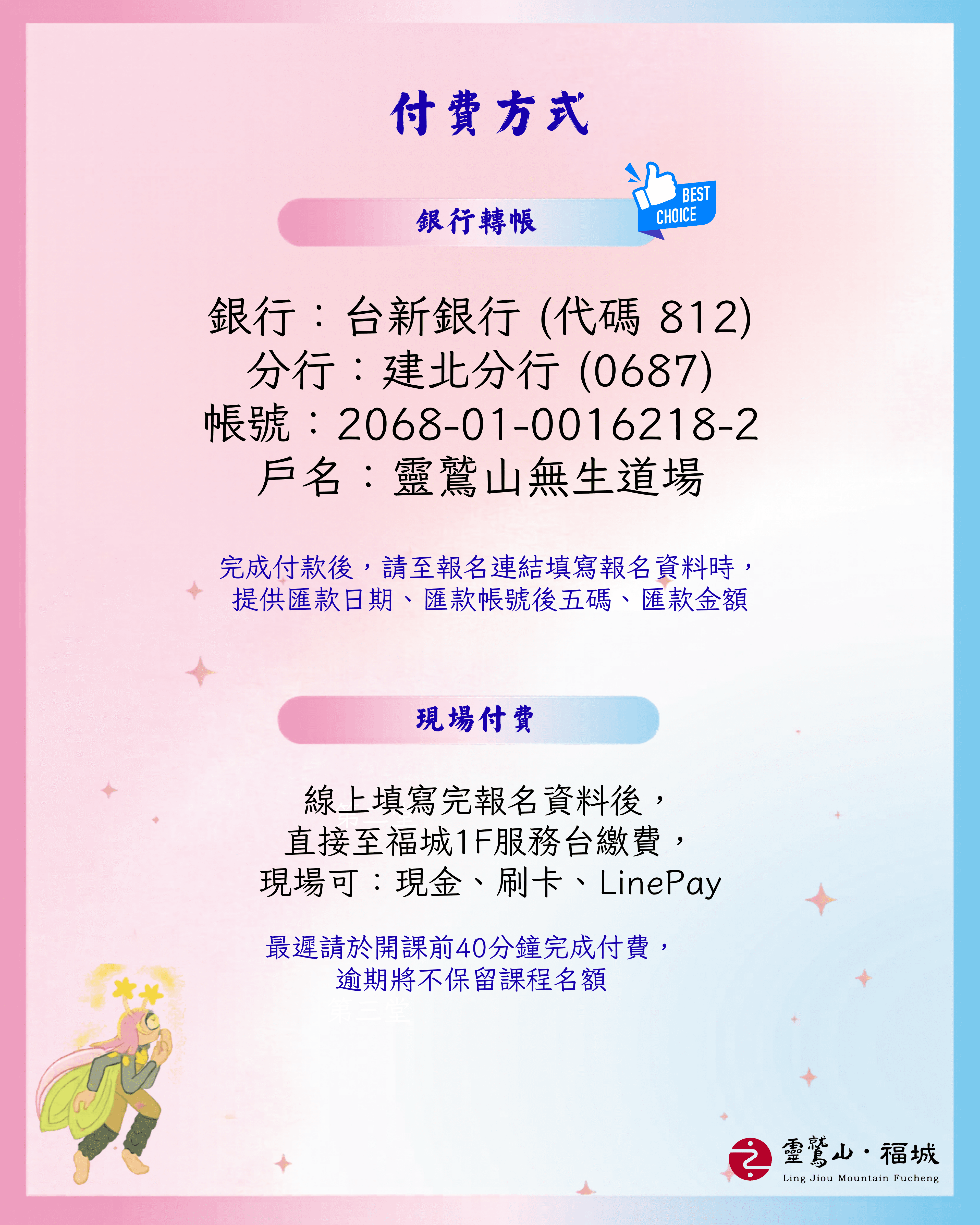 💳付費方式:銀行轉帳/Line Pay/現場付費